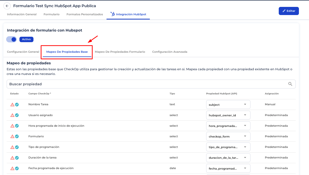 Configuración avanzada — Integración de Formularios CheckOP con HubSpot