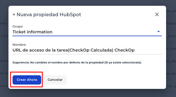 Propiedad generada en HubSpot |