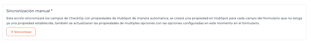 La sincronización entre CheckOP y HubSpot se realiza en tiempo real o bajo tareas programadas, por lo cual es necesario garantizar conectividad estable durante la configuración inicial.
