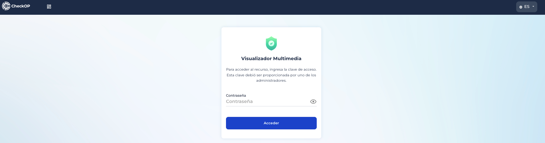Permite establecer una clave de acceso para restringir la visualización de los archivos multimedia compartidos mediante los enlaces públicos generados por CheckOP.